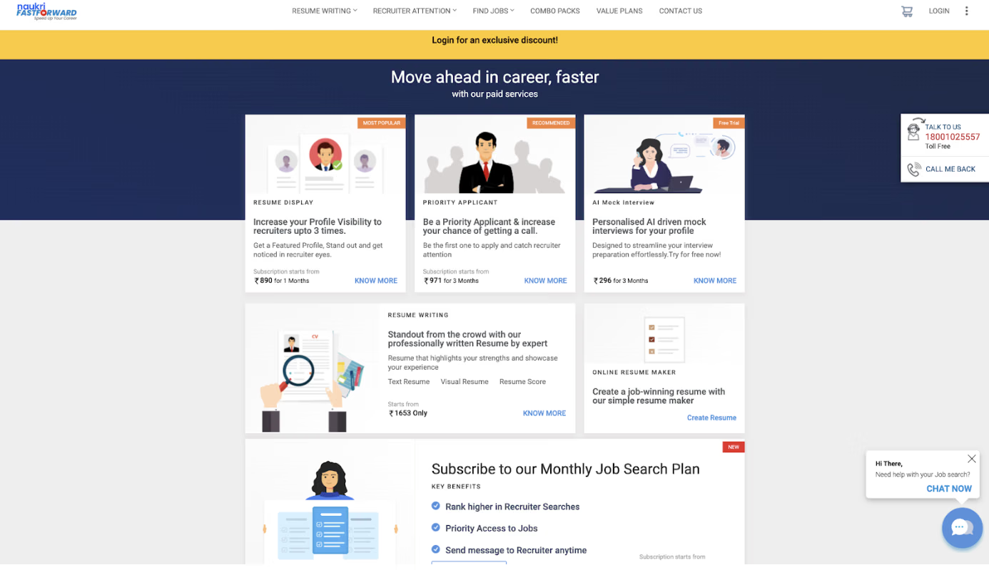 | 3 | Naukri FastForward | Naukri Portal Users | ₹890 |