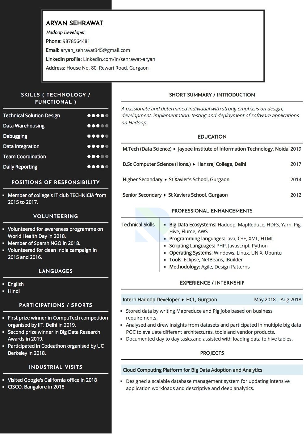 Check out the Full Resume of Hadoop Developer build on Resumod here