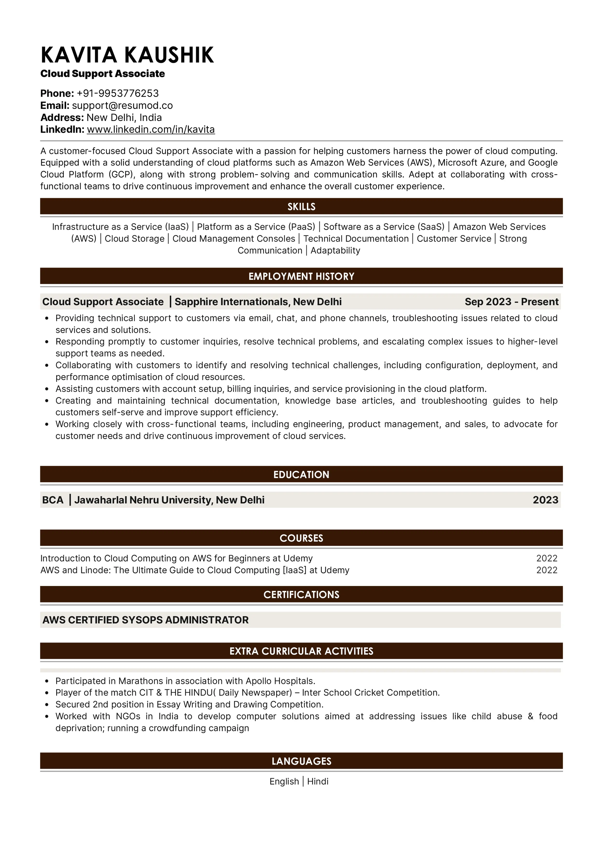 Resume of Cloud Support Associate