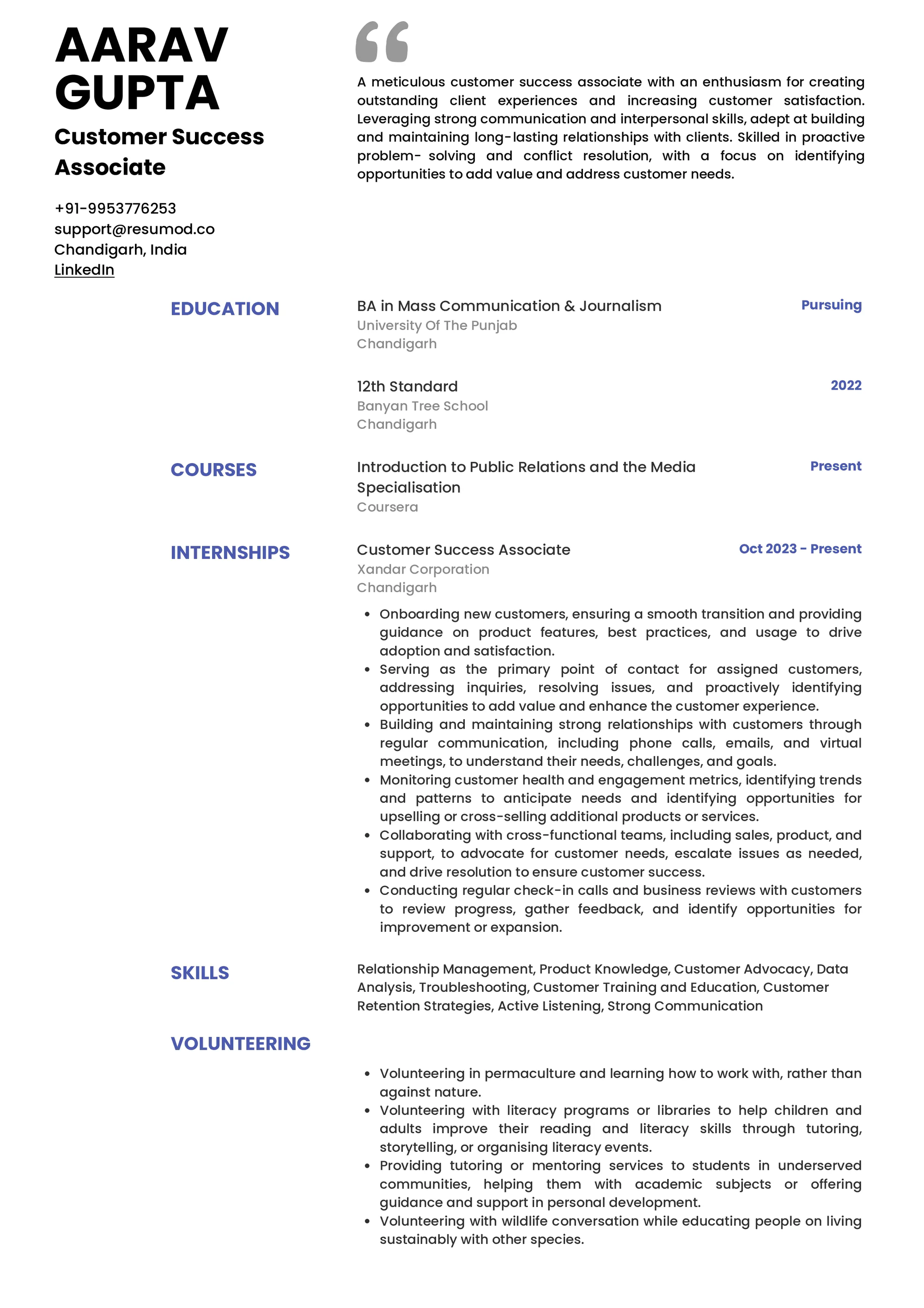 Resume of Customer Success Associate